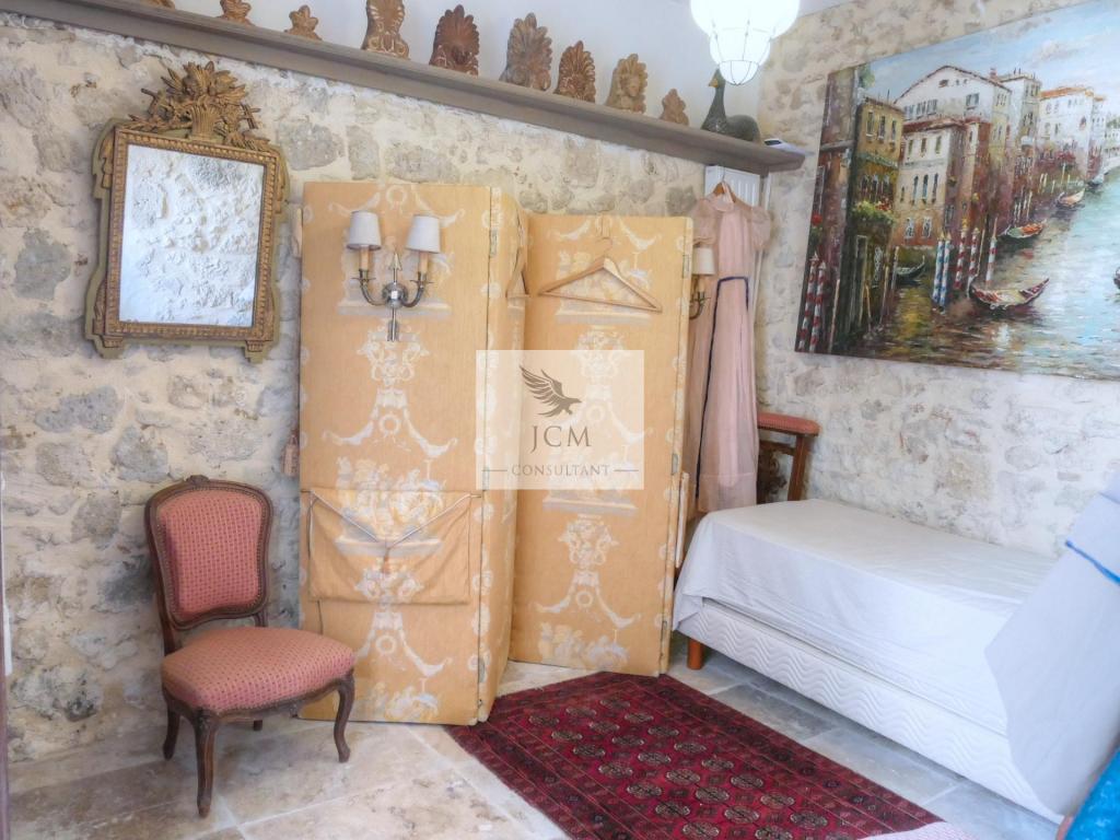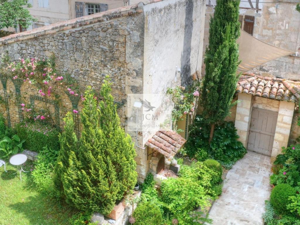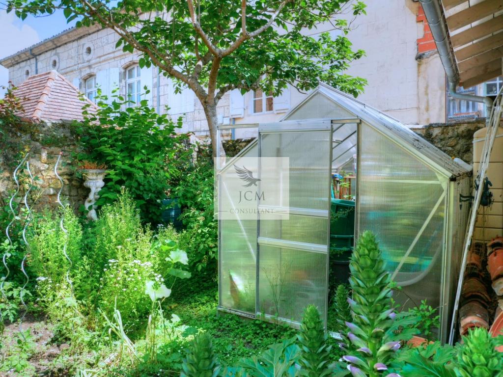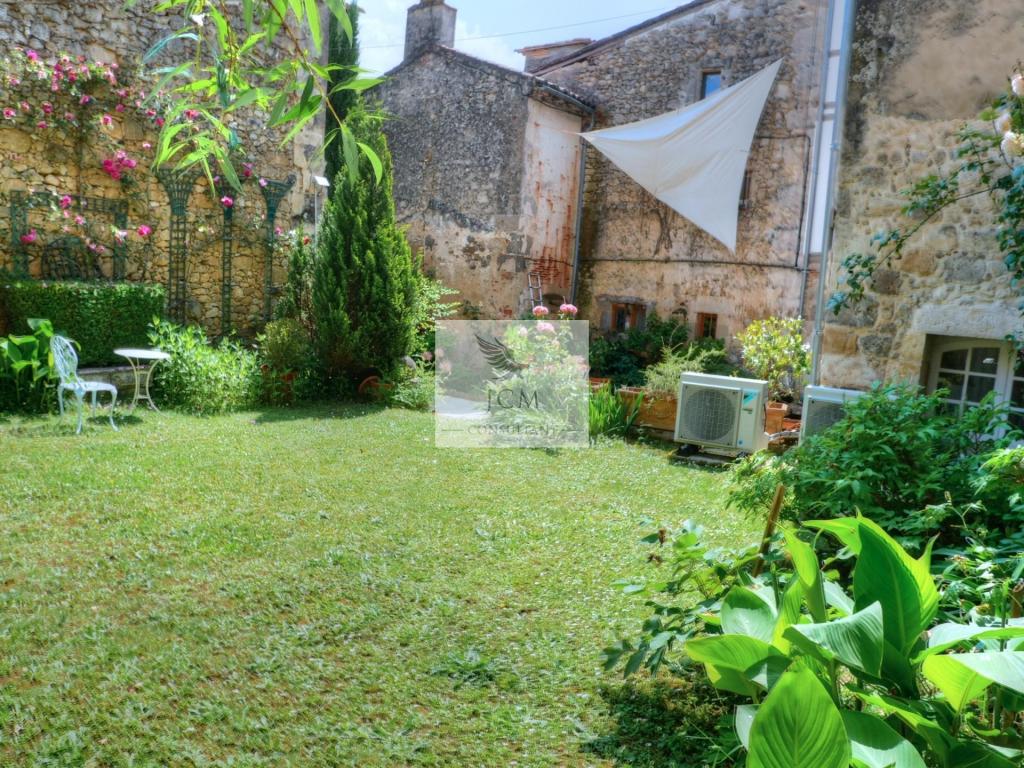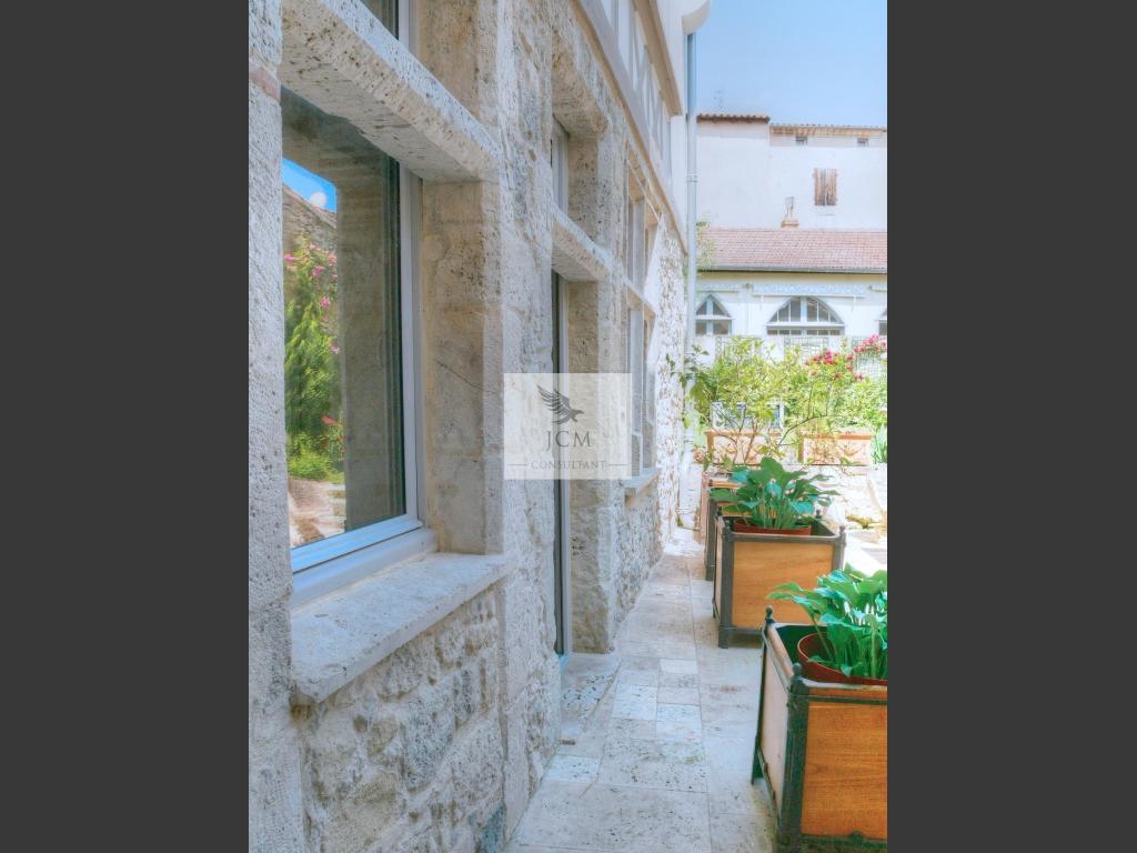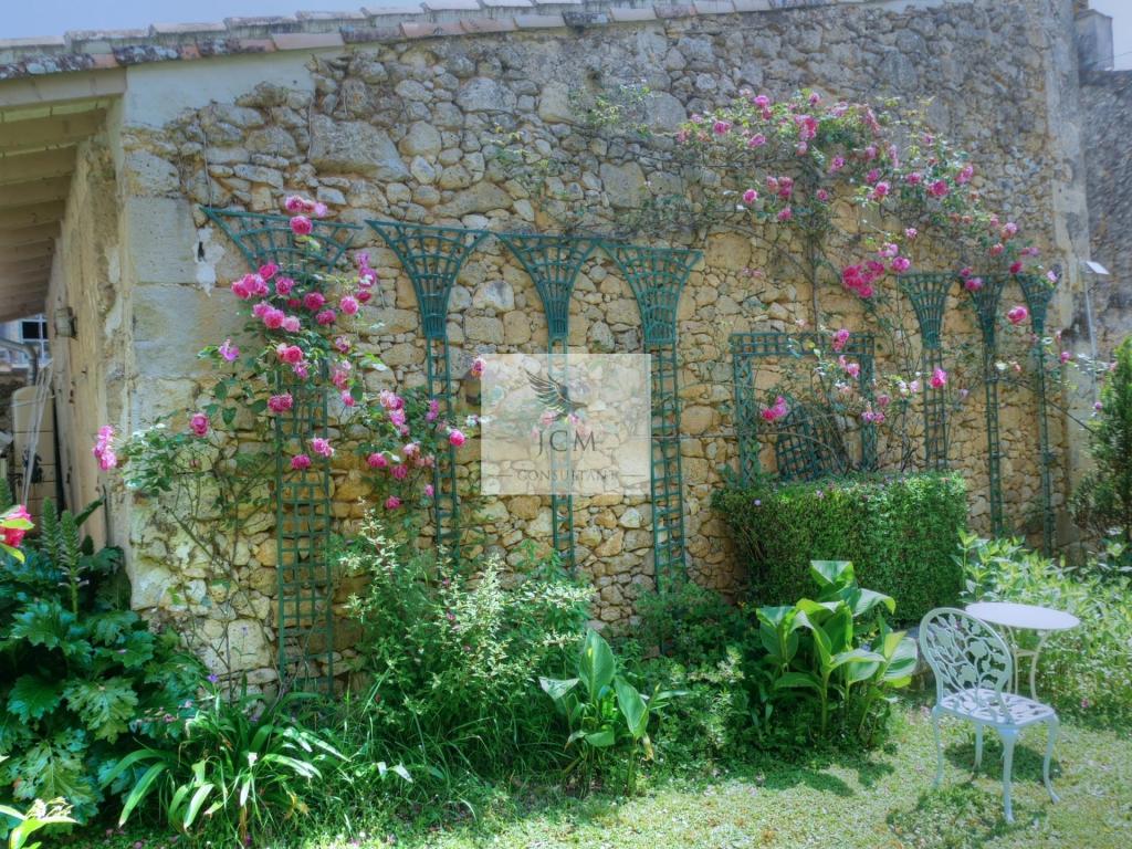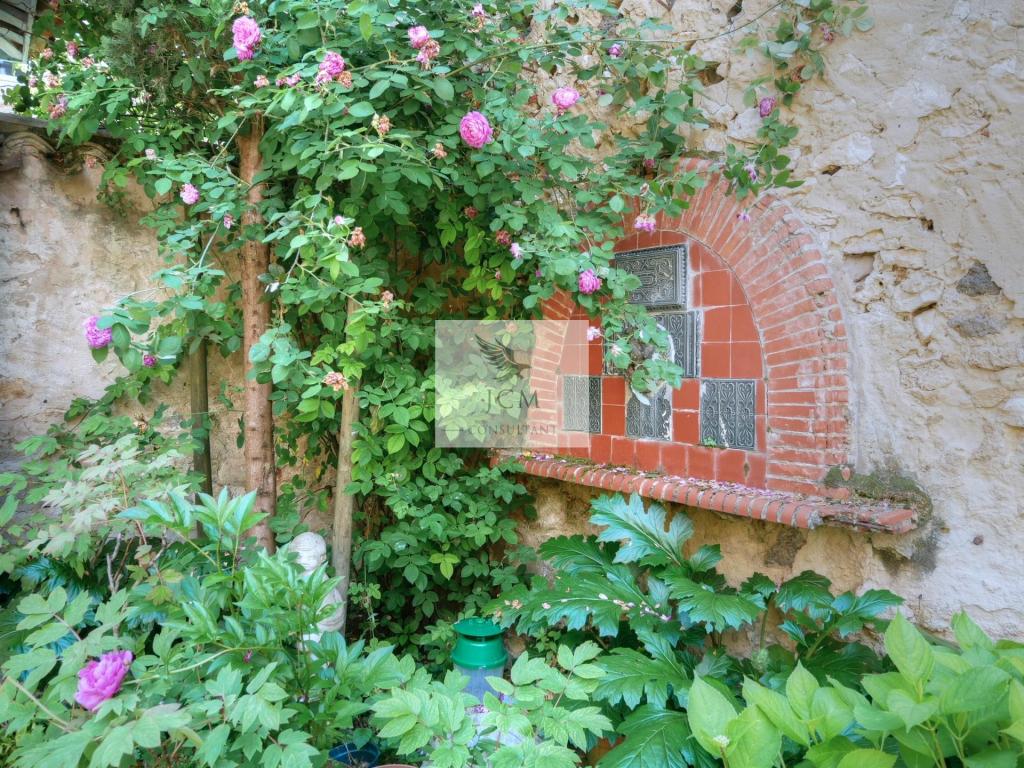 En extérieure, le jardin clos de murs est agréablement agencé avec sa terrasse en travertin sans oublier le garage 2 voitures (37 m²) avec mezzanine pour le coté pratique.