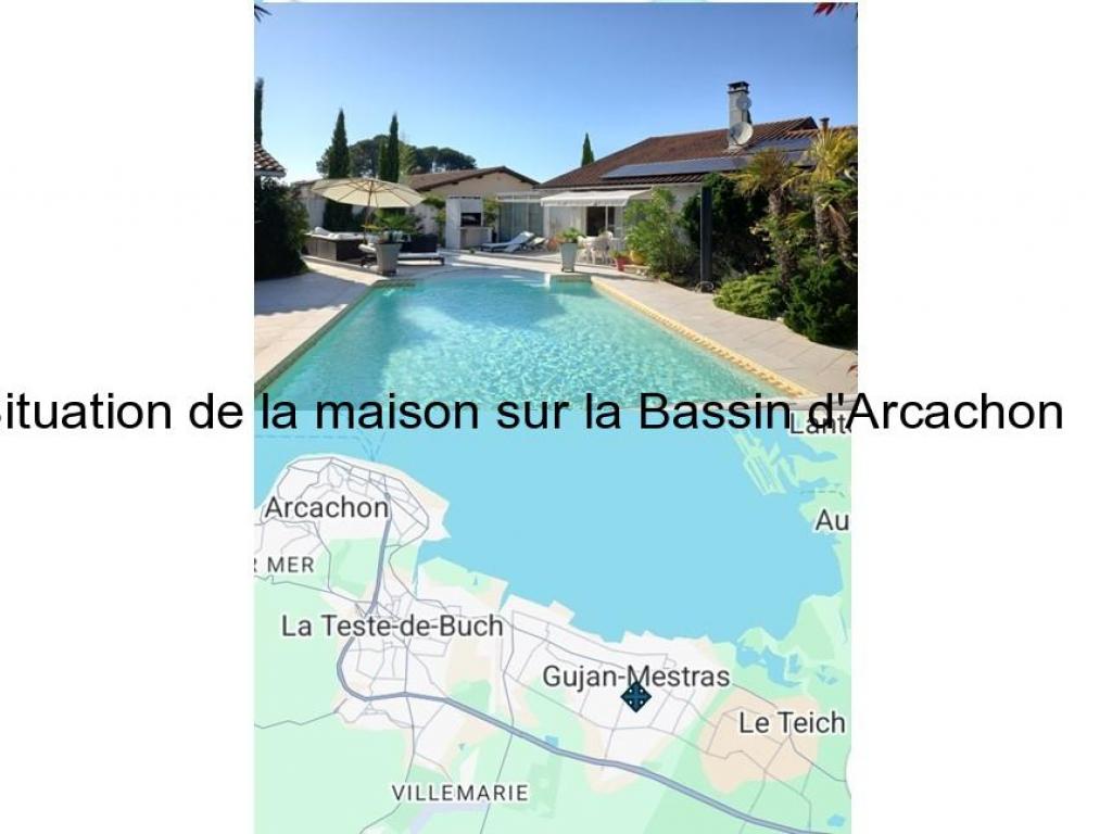Sud Ouest , sur le bassin Maison 165m2 habitables, 4 chambres Terrain arboré 895m2, Salon Séjour 54m2 avec cuisine ouverte + un espace...